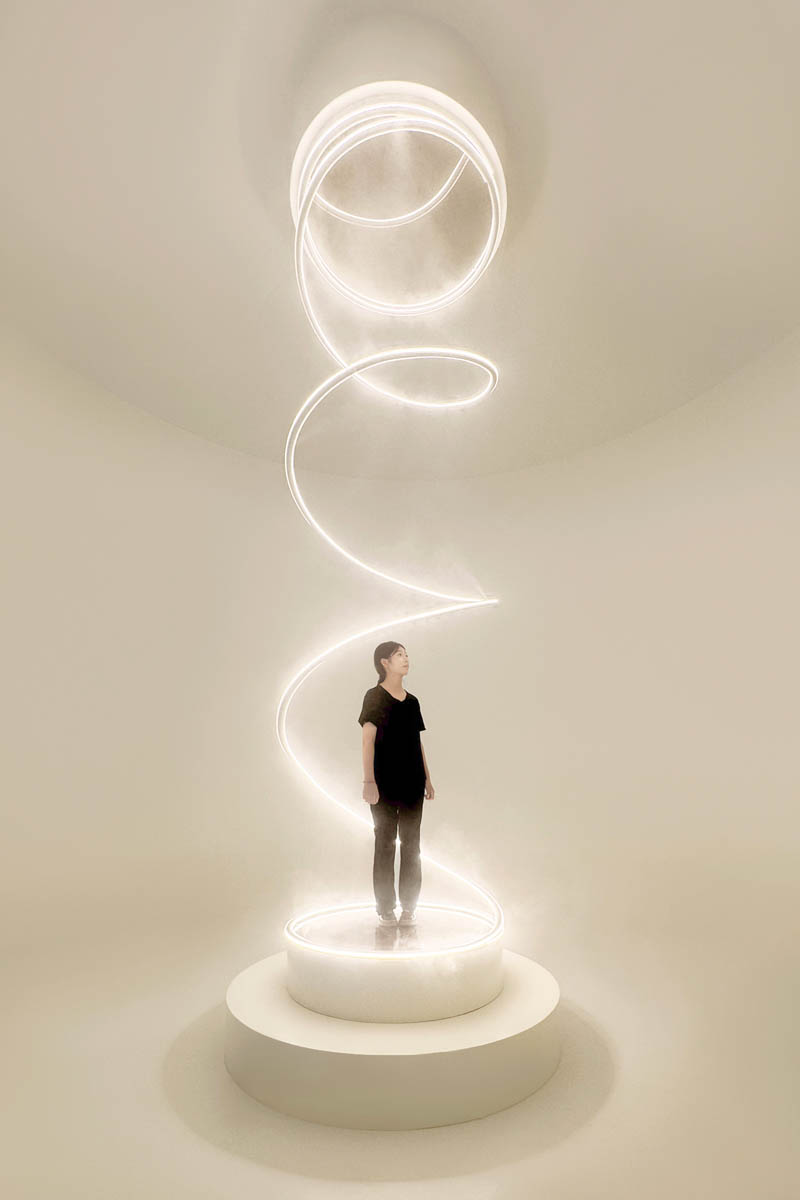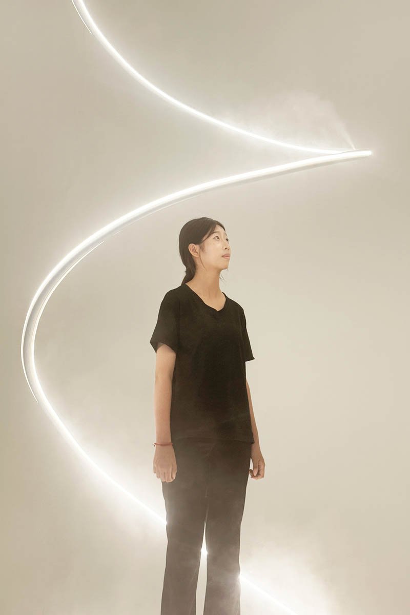 Furthermore, constructed with advanced lighting systems and precise spatial design, the installation uses the soft diffusion of light and density of mist to create a meditative, sensory experience. In addition, each element — from the tonal progression of illumination to the subtle layering of sound — is meticulously orchestrated to guide viewers toward serenity and contemplation.