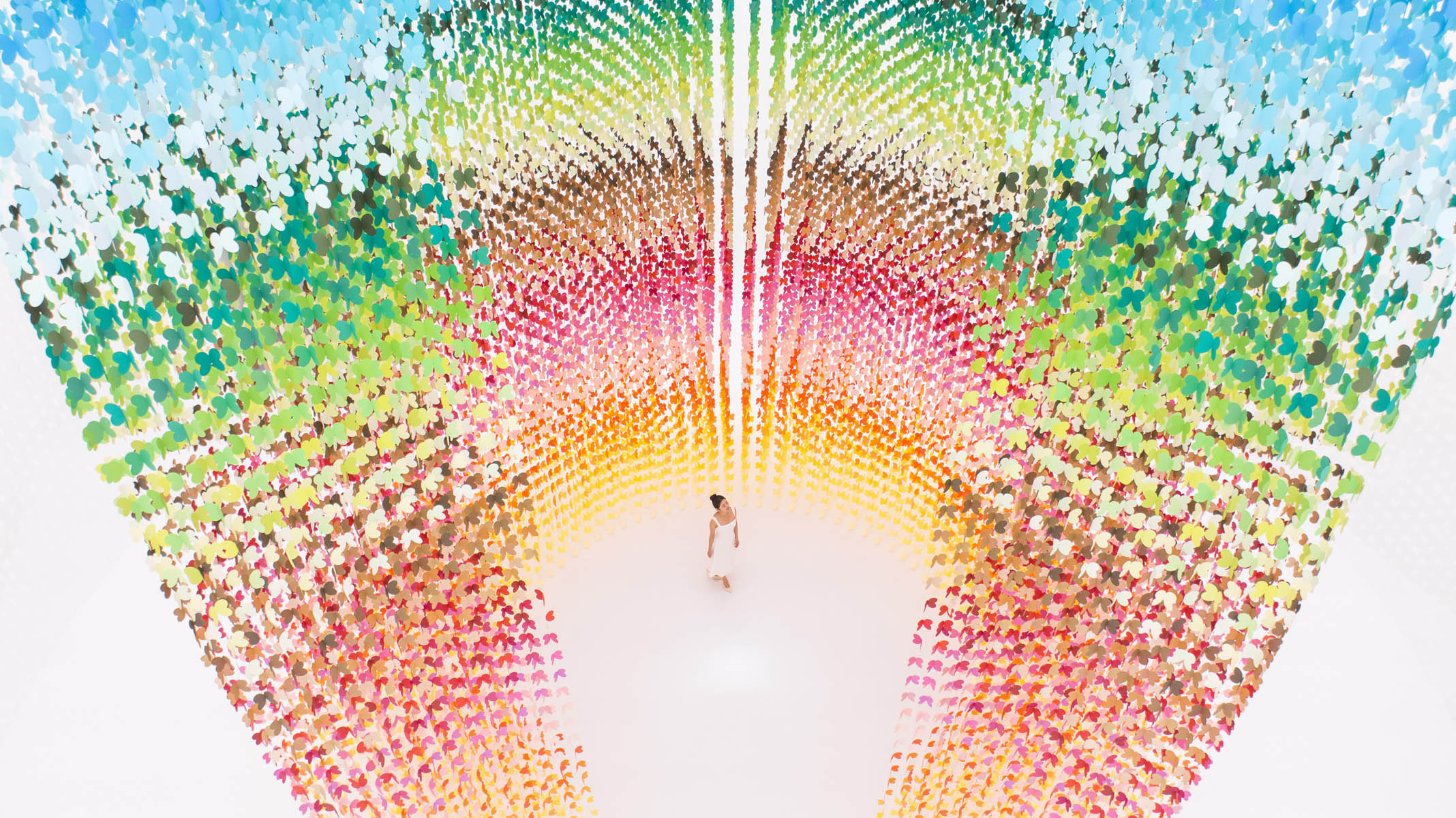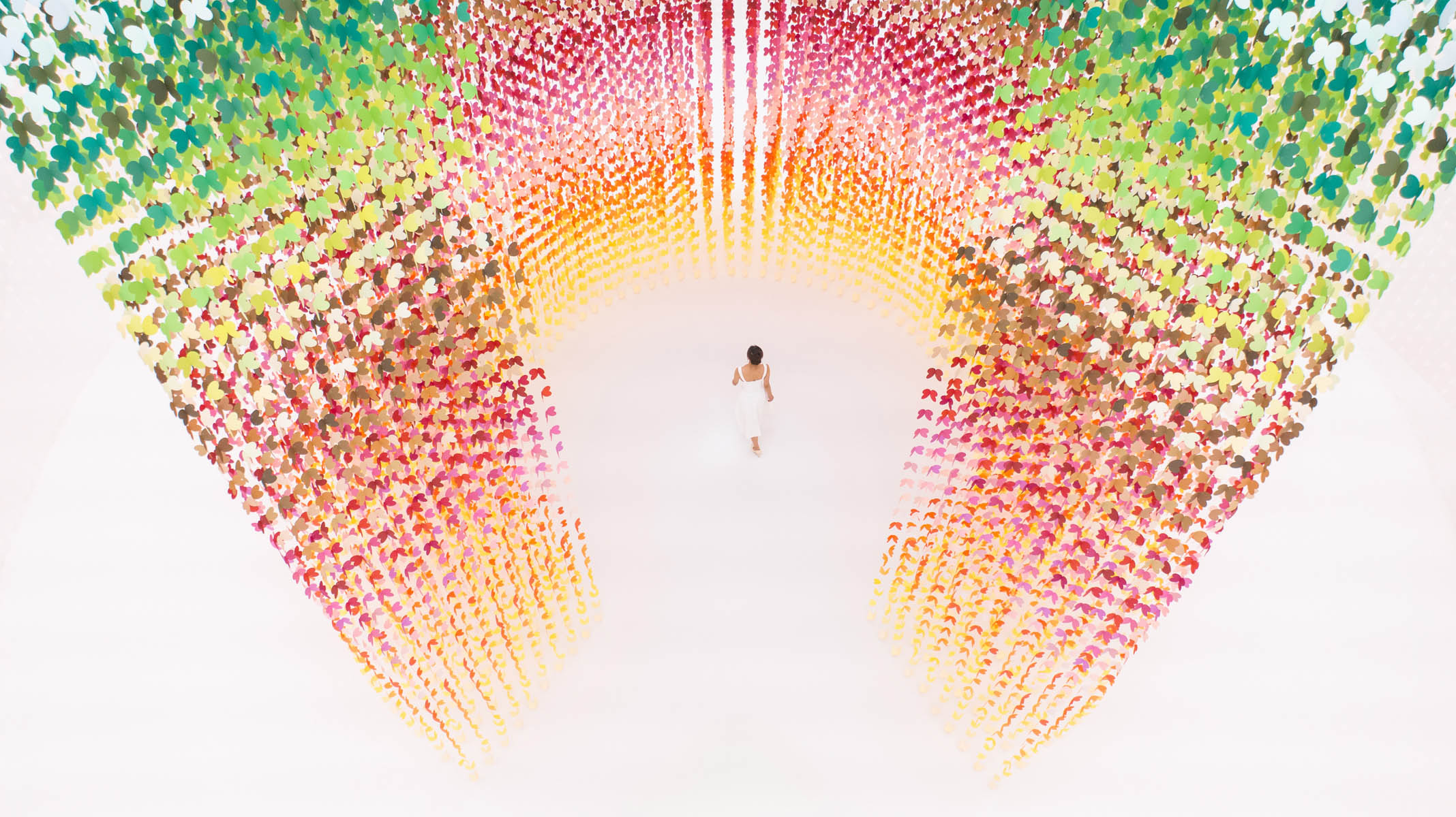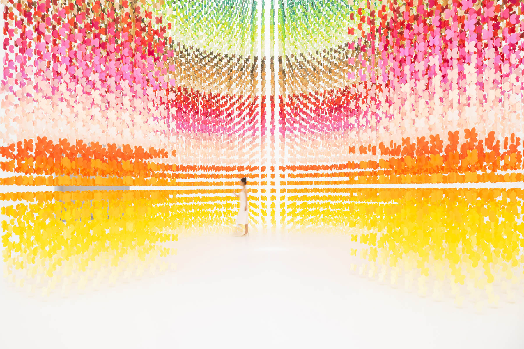 Entitled 100 Colors N°.48 “100 Colors Butterflies”, the artwork is a monumental paper-cut installation. It is composed of 40,000 butterflies in 100 meticulously selected hues, suspended to form a vibrant, layered composition. As part of her ongoing 100 Colors series, the piece transforms space into a floating chromatic landscape where color, light, and air become the architecture itself.