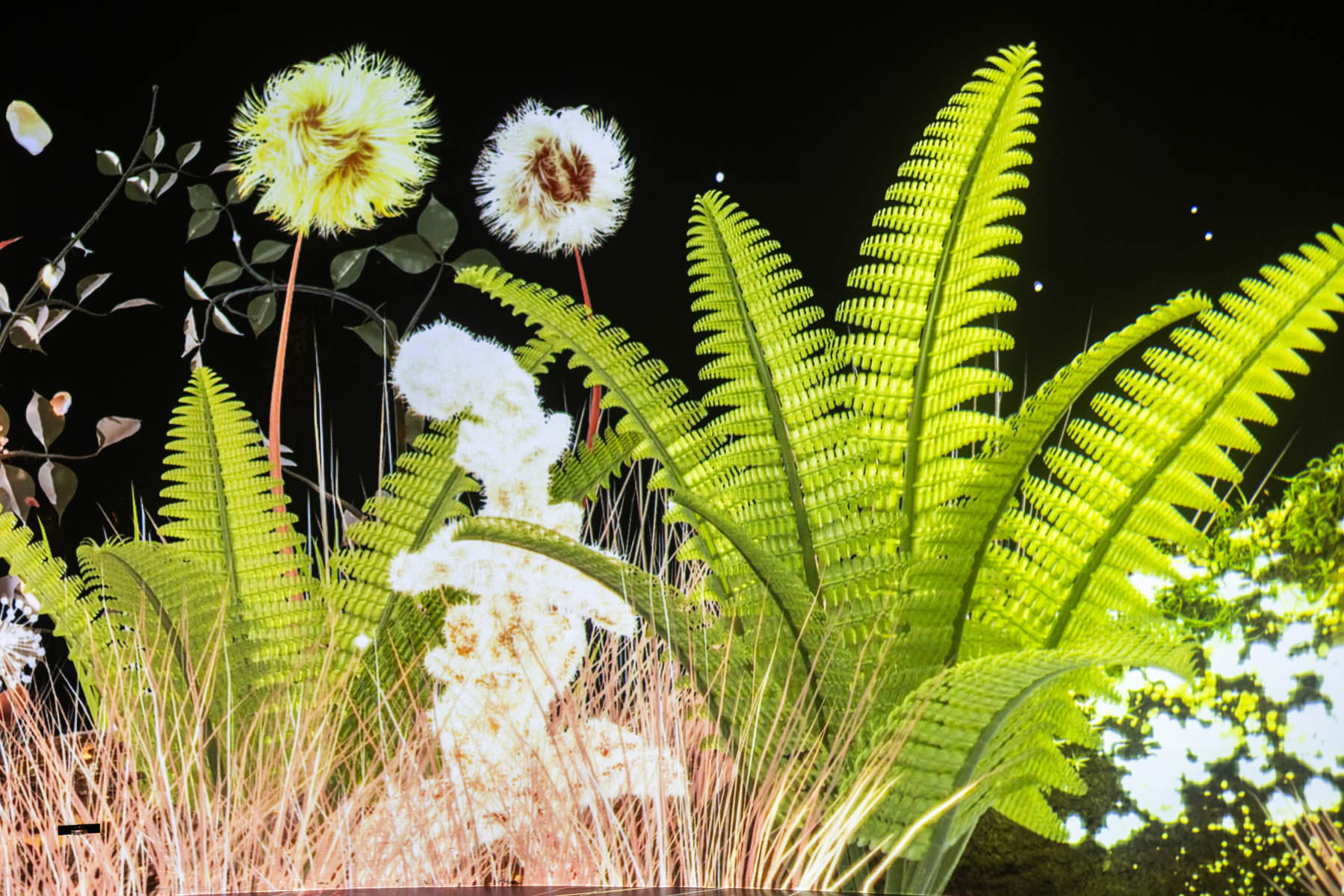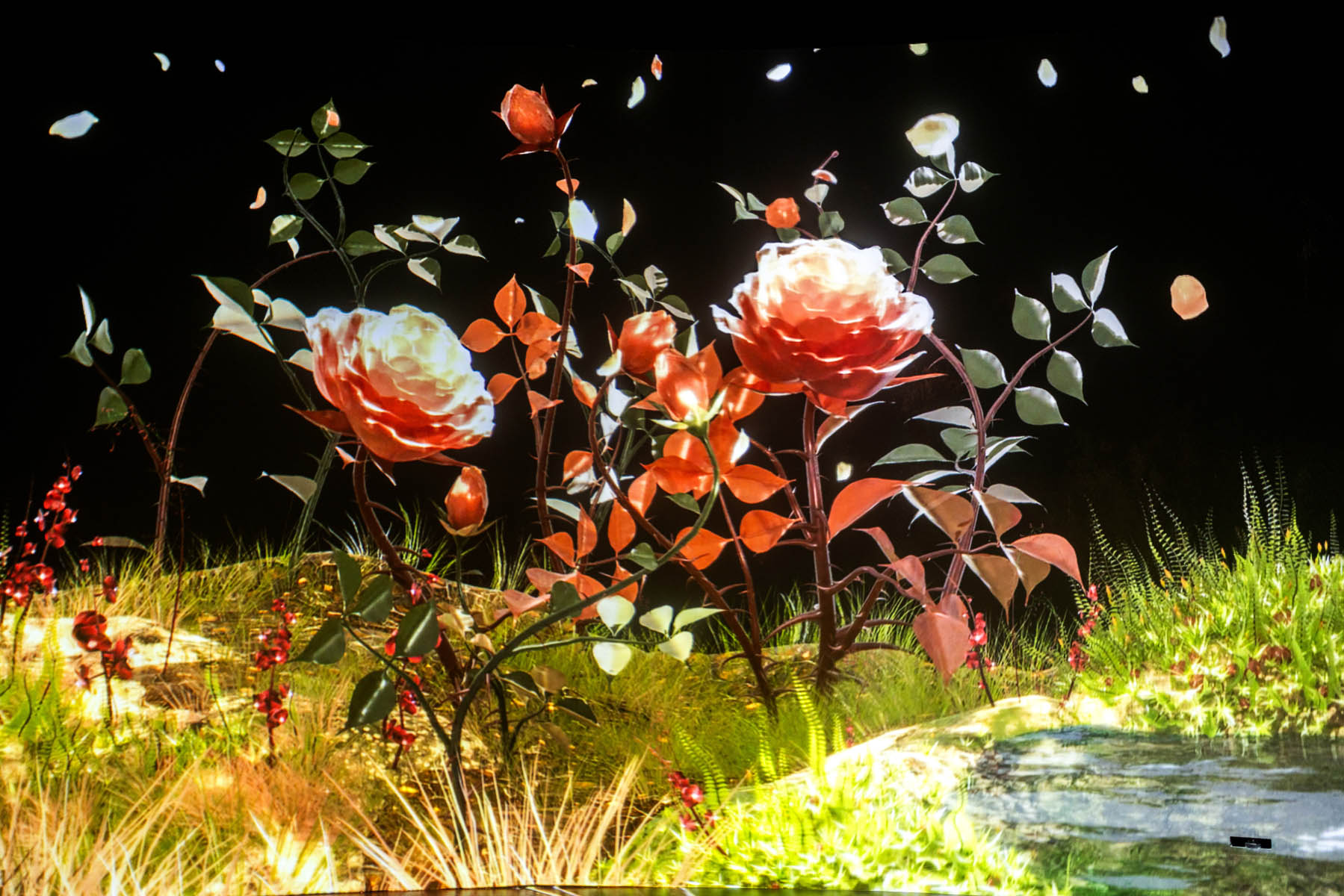 Placing viewers at the heart of a garden of the future, the installation invites them to experience the beauty and fragility of nature. At the same time, it prompts reflection on the impact of climate change, the relationship between human behavior and the environment, and the importance of biodiversity. Through layered digital imagery and sound, Zheng imagined a poetic ecosystem where art and technology merge to evoke awareness and wonder.