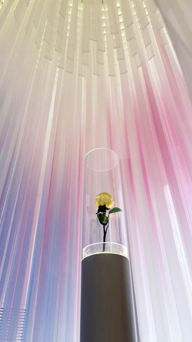 For Lancôme’s Art of Absolue 2025 project, Somexing Artistic commissioned Japanese artist Daigo Daikoku to create The Eternal Rose. This large-scale textile installation celebrates cyclical beauty and renewal. Through movement, color, and sound, the artwork expresses the brand’s philosophy of care and regeneration.