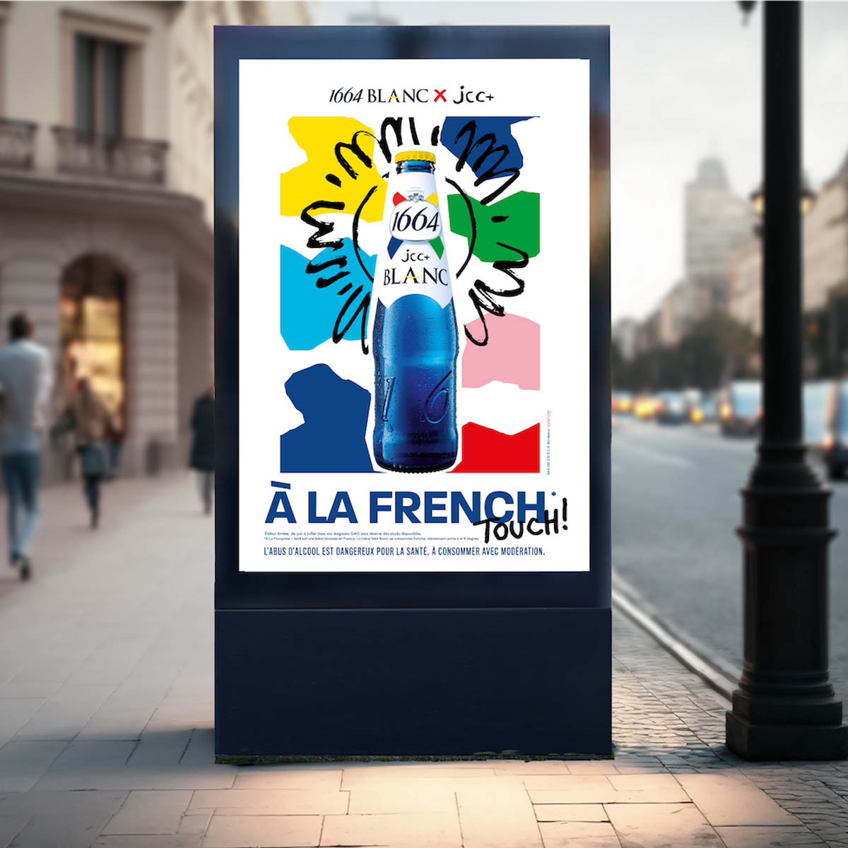 Through limited-edition bottles and packs showcasing JCC’s colorful designs, the campaign unfolded with a Paris launch event, over 100 bar activations with branded glasses, t-shirts, and a signature cocktail, alongside retail and digital campaigns celebrating 1664 Blanc’s festive creativity.