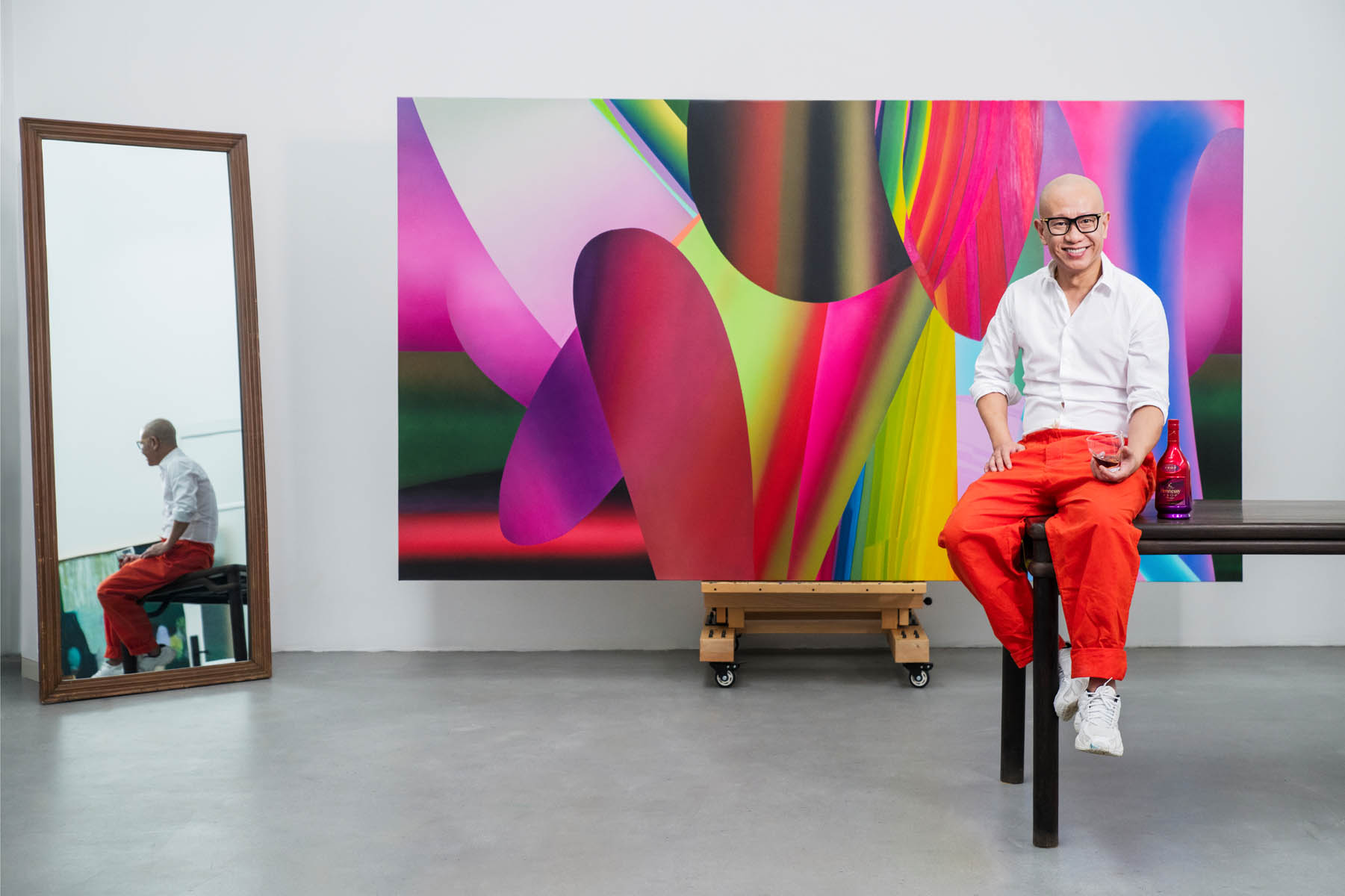 Inspired by spring and cognac’s layers, Liu depicted renewal and energy in vibrant abstract forms.