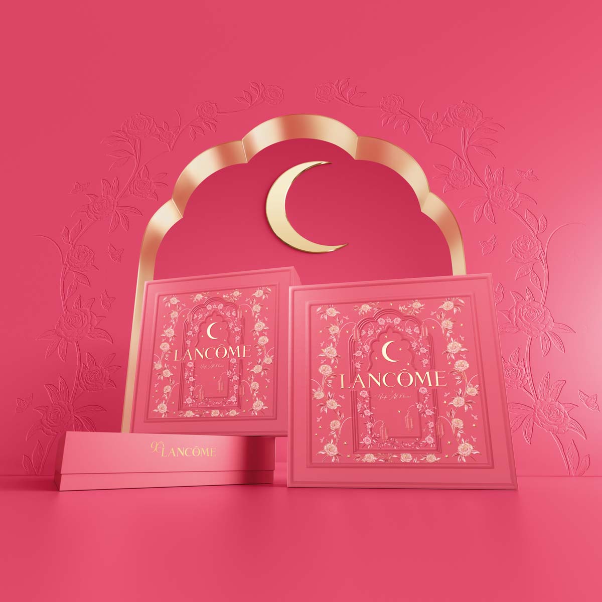 Lancôme collaborated with Dubai-based artist and designer Huda Al Nuaimi to create an exclusive Ramadan 2025 limited edition. Her designs reinterpret Lancôme’s iconic rose as a flower of paradise. Combining arches, crescents, lanterns, and butterflies, Al Nuaimi evokes spirituality and renewal.
