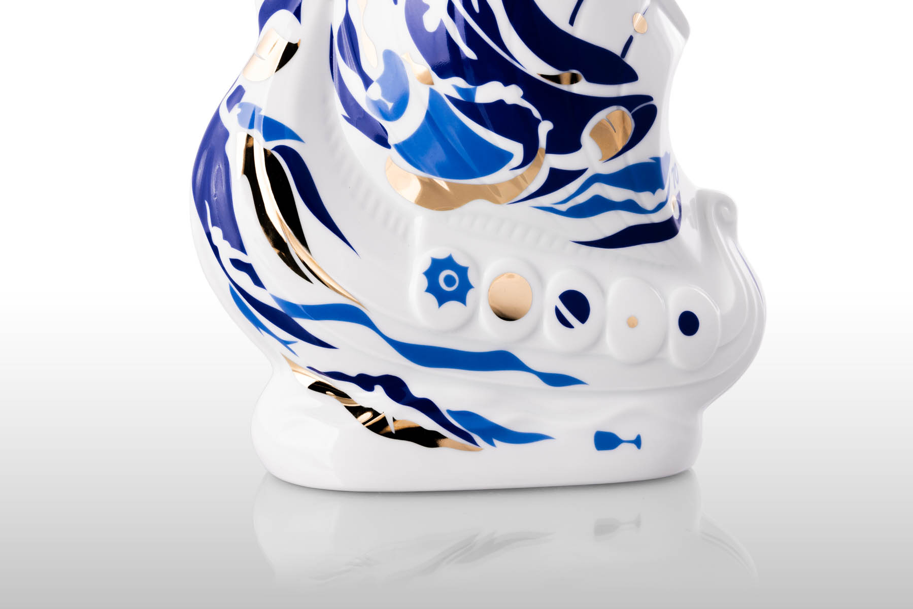 Jia reinterpreted Larsen’s Drakkar with silkscreen and hand-drawing techniques, merging fantasy and aquatic worlds with luxury craftsmanship.